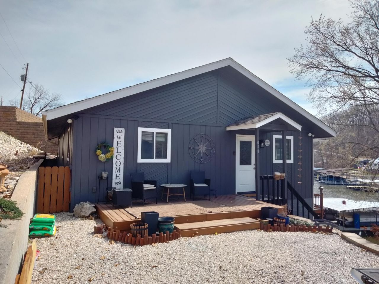 Beautifully landscaped lakefront home centrally located just outside of Camdenton on the 2-mile marker of the Big Niangua. No HOA's or rental restrictions. Unlike many other lake homes, we have plenty of parking and home is on a paved road end of a quiet street. Home received a new maintenance free roof and Anderson windows in 2026. Property has 190 feet of calm shoreline with all new rip-rap rock! Our quiet cove is perfect for calm water swimming and fishing. Home is a 3 bedroom (with a flex room that could be used for a 4th), and two baths. The primary bath has been remodeled and includes a steam shower for cold days or just relaxing. Home has been updated to include all newer appliances, cabinets, and flooring. There is a large, fully enclosed sunroom for entertaining. It has a beautiful wood burning fireplace for relaxing on those cooler evenings. Located under the sunroom is an enclosed area that can be used for storage or as a potting room. Outside there is a 24 x 24 composite deck for lounging, having drinks, and grilling. There is also a newer 22' x 24' metal garage with work area and storage for your 'toys'. Property includes a 10 x 24 covered dock with a newer lift - plenty of room for expansion if needed. There is a nice composite swim platform along with a PWC lift. Because of the 190' of shoreline we also have privacy that other homes do not have. Home can/will come turn-key, ready to enjoy the lake. And yes, the paddleboat comes with the house!