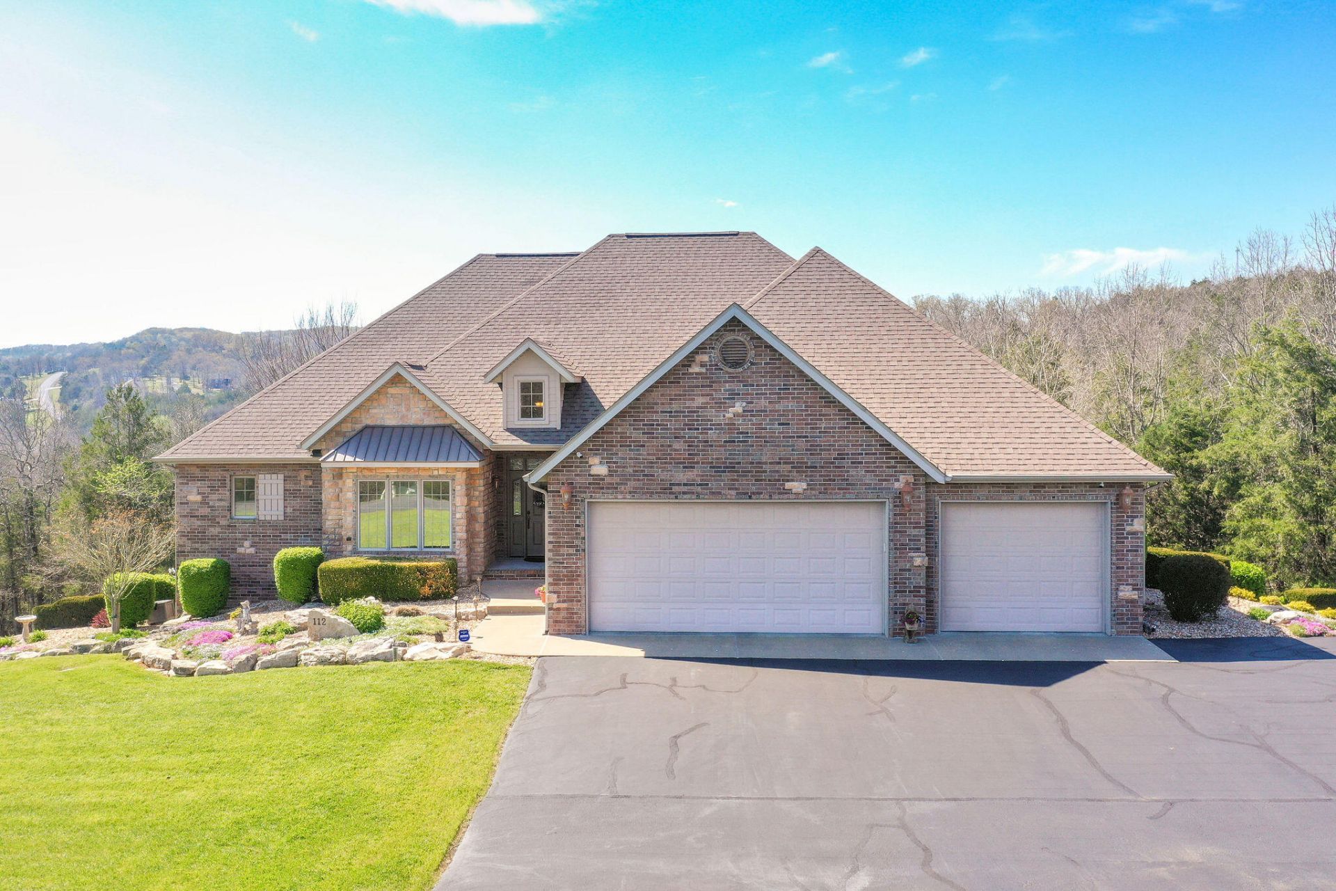 Located in Saddlebrooke, this beautiful brick 4-bedroom, 3.5-bath home, plus an additional wooded lot, offers the perfect blend of comfort, space, and privacy. The home features carpet, tile, and wood flooring, while vaulted ceilings create an open, airy feel. There are three propane fireplaces, perfect for relaxing evenings. The home is equipped with a security system and central vacuum for added convenience.The main level includes an open foyer, three bedrooms, two bathrooms, a combined living room (with fireplace) and dining room, and a spacious kitchen with ample cabinetry, an island, and space for dining. There is also a hearth roomThe downstairs features a master bedroom with a walk-in closet, a full bathroom, and a large family room with a corner fireplace and sliding glass doors that open to a huge wooden deck and private backyardThe lower level may function as a mother-in-law suite, featuring a kitchenette .In addition, there is office space along with a separate crafting room,We cannot forget the large John Deere room/workshop area, complete with built-in cabinets, a utility sink, and storage--ideal for hobbies, tools, or projects. A separate utility room is adjacent to the John Deere room.