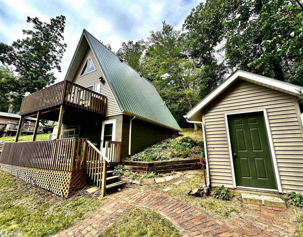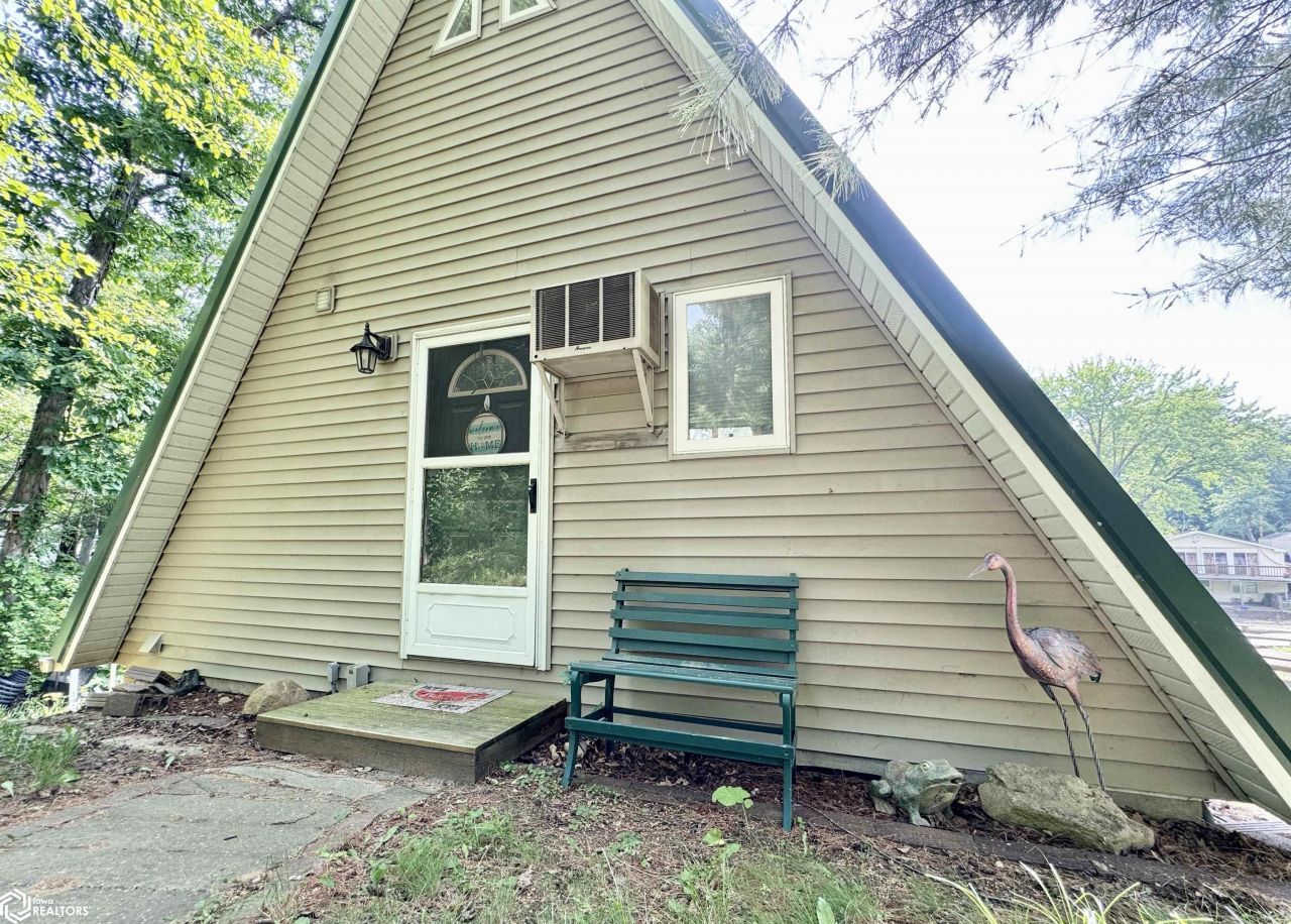 Escape to your dream waterfront retreat with this impeccably updated Aframe nestled in a serene quiet bay just beyond the no wake zone. This charming home welcomes you with a bright kitchen and a convenient main floor full bathroom just steps away. The heart of the home is a stunning great room finished in warm wood tongue and groove car siding offering an absolutely stellar view of the lake through sliding glass doors that lead to an expansive waterfront deck. For a classic lake house feel climb the ships ladder to a cozy sleeping loft featuring a private balcony overlooking the great room. The finished walkout lower level provides ample space with two comfortable bedrooms an additional living area and a half bath with laundry facilities. Step outside to a shaded ground level patio then follow the cobblestone path past the large campfire pit and storage shed down to your recently releveled boat dock. This property has been meticulously maintained and continuously improved with significant upgrades including a new steel roof and central air conditioning and a recently updated septic system and new interior plumbing. Modern conveniences abound with a new stack washer and dryer a new full size kitchen stove and a new water line to the house. Whether you are seeking a peaceful part time getaway or a simpler full time lifestyle where you can live and work surrounded by beauty this well cared for home might be exactly what your new lake life has been looking for.