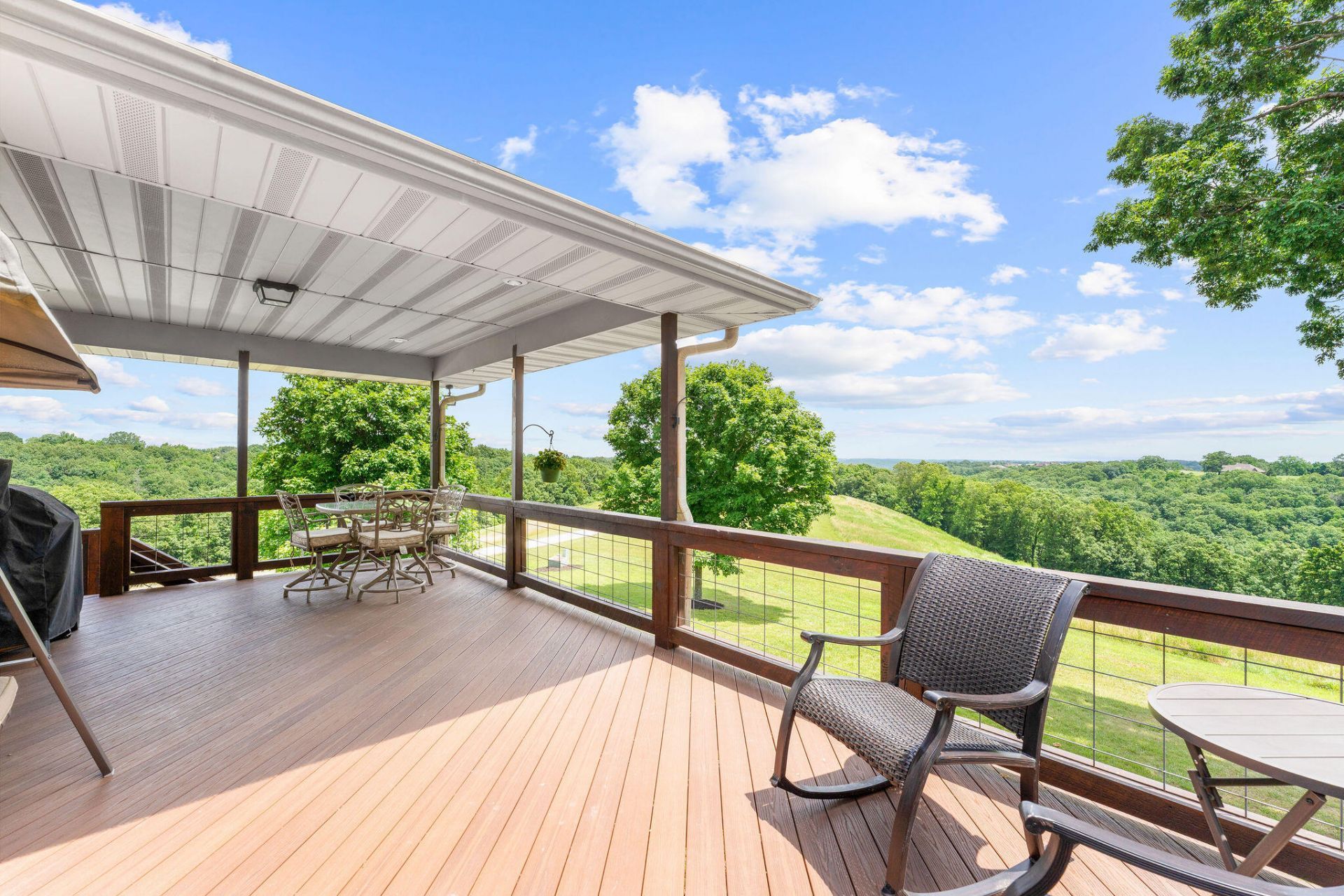 Immaculate and beautifully maintained, this 4-bedroom, 2.5-bath home sits on 48.44 scenic acres just off Hwy 160--offering the rare combination of privacy and convenience, with easy access to both Branson and Springfield. Set back from the road with a long private drive, the property provides a peaceful, tucked-away setting surrounded by open, well-maintained land.Inside, you'll find a spacious open kitchen and dining area, generous living spaces, and a finished basement with an additional living area--ideal for entertaining or relaxing. One unfinished room offers flexibility for a home gym, media room, or potential additional bedroom.Recent updates include a new roof and composite deck (2023), along with a high-efficiency ground-source HVAC system (2025).Outdoor features include established trails, a garden area, and a water hole that regularly attracts wildlife, along with a small hunting shack. The expansive covered deck provides a great space to enjoy the surrounding views and natural setting.A standout feature of the property is the 4,615 sq ft shop located just below the home, complete with three new garage door openers--offering ample space for equipment, storage, or hobbies.This property offers a unique blend of space, functionality, and natural beauty--ideal for those seeking acreage living without sacrificing convenience.