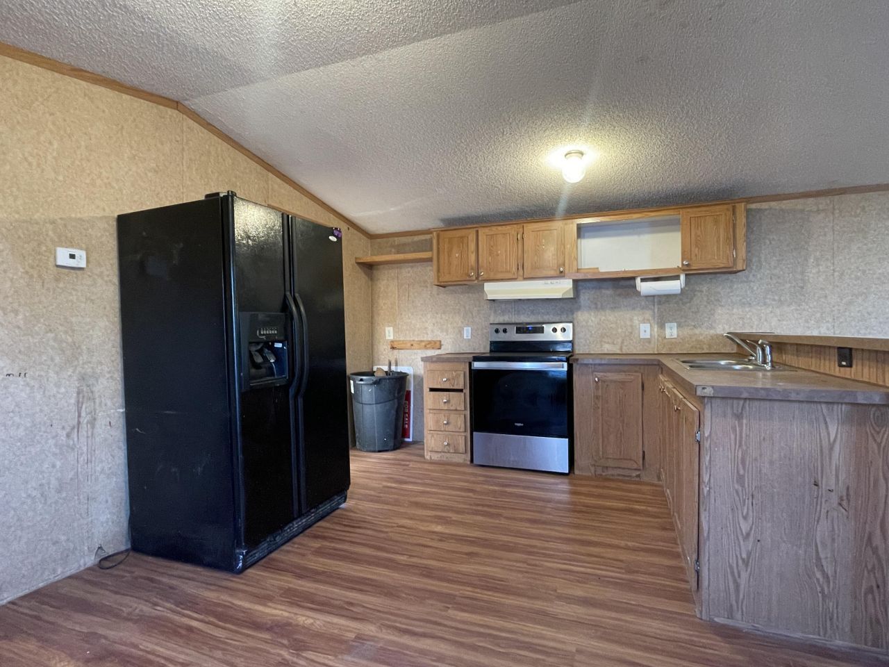 Affordable 3-bedroom, 2-bath home located directly across from the schools in Licking, MO. Manufactured in 2005, this 1,248 sq ft home features a split-bedroom layout. New vinyl flooring and other updates throughout and is equipped with central heating and air for year-round comfort.Outside, you'll find both a front and back deck, a fully fenced yard ideal for pets, and two portable garages that can stay with the property, offering additional storage or covered parking.Situated on a 0.16-acre lot with city utilities, this property offers a great opportunity for buyers looking for an affordable home in a convenient location with the chance to make it their own. Schedule a showing to see the potential for yourself. Will Sell Cash, Conventional, or Owner Finance