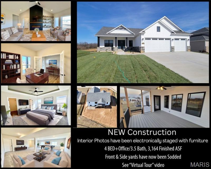NEW Construction by Penn Builders, located minutes from I Hwy access on a Daylight Cul-de-sac Lot that features a Composite @12x17 Covered Deck with fan/light & steps to a Stamped Concrete @12x20 Patio & spacious back yard. Preliminary Specs/Subject to Changes. 4 Bed + Office/3.5 Baths; Split BR/Open Floor Plan; 9' foundation/9' main level walls with High Vault in LR & Accented Tray Ceiling in the Primary BR; Electric Fireplace w/Mantle and Shiplap Face to ceiling, flanked by Custom Wood Shelving; Craftsman style Front Door; full glass steel door to the deck; Stone Wainscot across entire front, with Covered @6x25 Front Porch w/Craftsman style Columns. ZIP system sheeting on exterior framed walls; House insulation R-13/R45 blown fiberglass in ceiling; Certainteed Landmark Architectural Shingles; Quaker Manchester low-e, tilt-wash, single-hung windows; Farmhouse style interior trim; upgraded RigidCore LVP flooring throughout main area + Entry Foyer, Garage Entry, Laundry, Pantry, Hall & Hall Bath; Tile flooring in Primary & Basement Baths. Kitchen includes Quartz c-tops/tiled backsplash; large island (@8' long) w/counter seating; stainless steel dishwasher, microwave, 5 burner gas stove/oven; range hood; and walk-in pantry. Homecrest Arbor cabs in Kitchen & Baths with soft close dovetail drawers/soft close cabinet doors; upgraded Delta faucets throughout home. Cultured Marble c-tops in Baths. Double sinks; linen cabinet; window; large tiled shower with showerhead & overhead rain can; and premium shower door with towel bar in Primary Bath. Clerestory Window & Linen Closet in Full Hall Bath. Main Floor Laundry features built-in folding table; electrical outlets; dryer vent & water hookups. Drop Zone inside garage entry. Stair lights along the staircase to the daylight/lookout basement, which features a FR; BR w/Egress & Walk-In Closet; Full Bath; and large unfinished storage area. Finished/insulated (R11 walls/R19 ceiling) Garage with Wi-Fi belt driven openers, keypad & water spigot (Plus 2 exterior spigots). 200 amp Electric; Hi-Eff HVAC; 50-gal commercial grade water heater; plumbed for water softener. Sodded front & side yards; seeded back yard; landscaped front yard; buried downspouts. C&Rs available at: https://www.rlpdevelopment.com/subdivision/hampton-glen. Slide show with floor plans & detailed info available at: https://canva.link/s8eh4akhpipces0