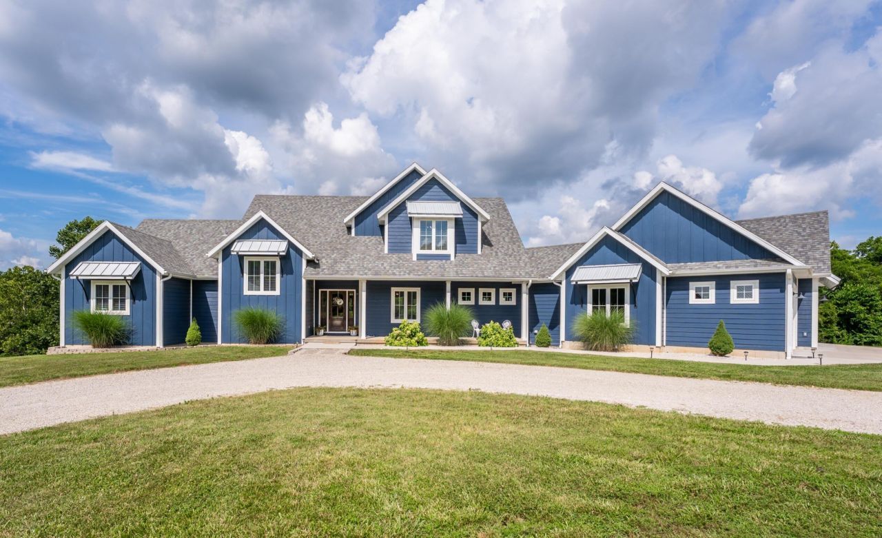PRICE ENHANCEMENT! Once in a lifetime opportunity to own this Stunning 8.5 Acre ± Modern Farmhouse Estate. This unrestricted, secluded, scenic, and usable land just 1.5 miles from Bull Shoals Lake and 10 minutes to Lake Taneycomo. NO HOA's! This property offers a mix of open pasture, valley views, wet-weather creek, and abundant wildlife. Partially fenced, bring your horses, or a little livestock, great recreation property.The custom-built Modern Farmhouse-style home features 4 beds, 3.5 baths, and premium finishes throughout. Highlights include multi-width ¾'' hickory flooring, reclaimed hand-hewn oak beam accents, vaulted and shiplap ceilings, quartz countertops, and a wood-burning fireplace with blower. Chef's kitchen with custom cabinetry, induction cooktop, and professional-grade appliances. Spacious master suite with custom tile shower, soaker tub, and dual vanities.Additional features:* Public water, private septic, fiberoptic internet* Remote security gate with touchpad* Walk-in pantry & laundry room* Above-ground pool with grilling porch and walkout basement* 2 HVAC systems (one dual fuel w/ propane backup)* 2 concrete storm shelters with steel doors* Wet bar, jack & jill bath upstairs, large basement storage room* 3-car garage with attic storage* Raised garden beds, fruit trees, thornless blackberries* 2 frost-resistant hydrants**36' x 54' shop building includes:*** 2 oversized parking bays* Attached 12'x36' parking pad* Apartment with full kitchen, bathroom, washer/dryer, and mini-split HVAC* Fire-rated sheetrock between apartment and shop* Covered porchJust 25 minutes to Branson. Suitable for horses, cattle, or future development. Shown by appointment only to pre-qualified buyers. All Measurements Are Approx. All information is deemed to be reliable, but Buyer and Buyers Agent please do own Due Diligence on Rules and Regulations and other matters. Listing acerage has been changed from prior offering to n