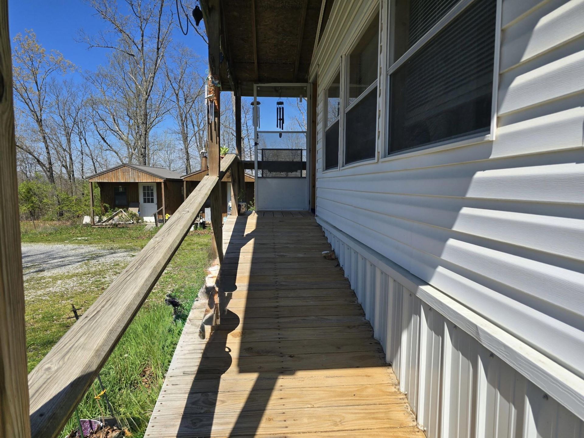 Excellent location and tons of potential for this manufactured home on 20 acres just minutes from town. 3 bedroom, 2 bath 1456 s.f. open floorplan home with enclosed front porch and rear sunroom, fireplace and metal roof. 3 storage sheds for convenience and partial fencing in place. The home is privately tucked away from the road on a mostly wooded acreage for a peaceful and quiet setting. Located just 5 minutes to town, schools and shopping.
