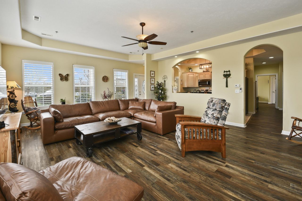 Discover the perfect blend of comfort and style in this beautifully designed 3-bedroom, 2-bath condominium boasting 1,500 square feet of modern living space. This condo is walk in with two exterior entrances, which offers both convenience and privacy.Step inside to be greeted by soaring high tray ceilings that enhance the airy feel of the open layout, while bringing in tons of natural light. Did I mention the newly installed plantation shutters throughout? Stunning! Also, new luxury vinyl flooring and brand new large capacity LG washer and dryer! The kitchen features stunning granite countertops, large farmhouse style sink and new refrigerator with an abundance of storage everywhere!The spacious master suite is complete with a large walk-in closet, granite counter tops with double sinks, and a walk-in shower. What is even better is it has screened-in enclosed front AND rear patios, perfect for enjoying coffee or evening relaxation in a serene setting overlooking the beautiful Ozark countryside! This is a must see for sure!!!