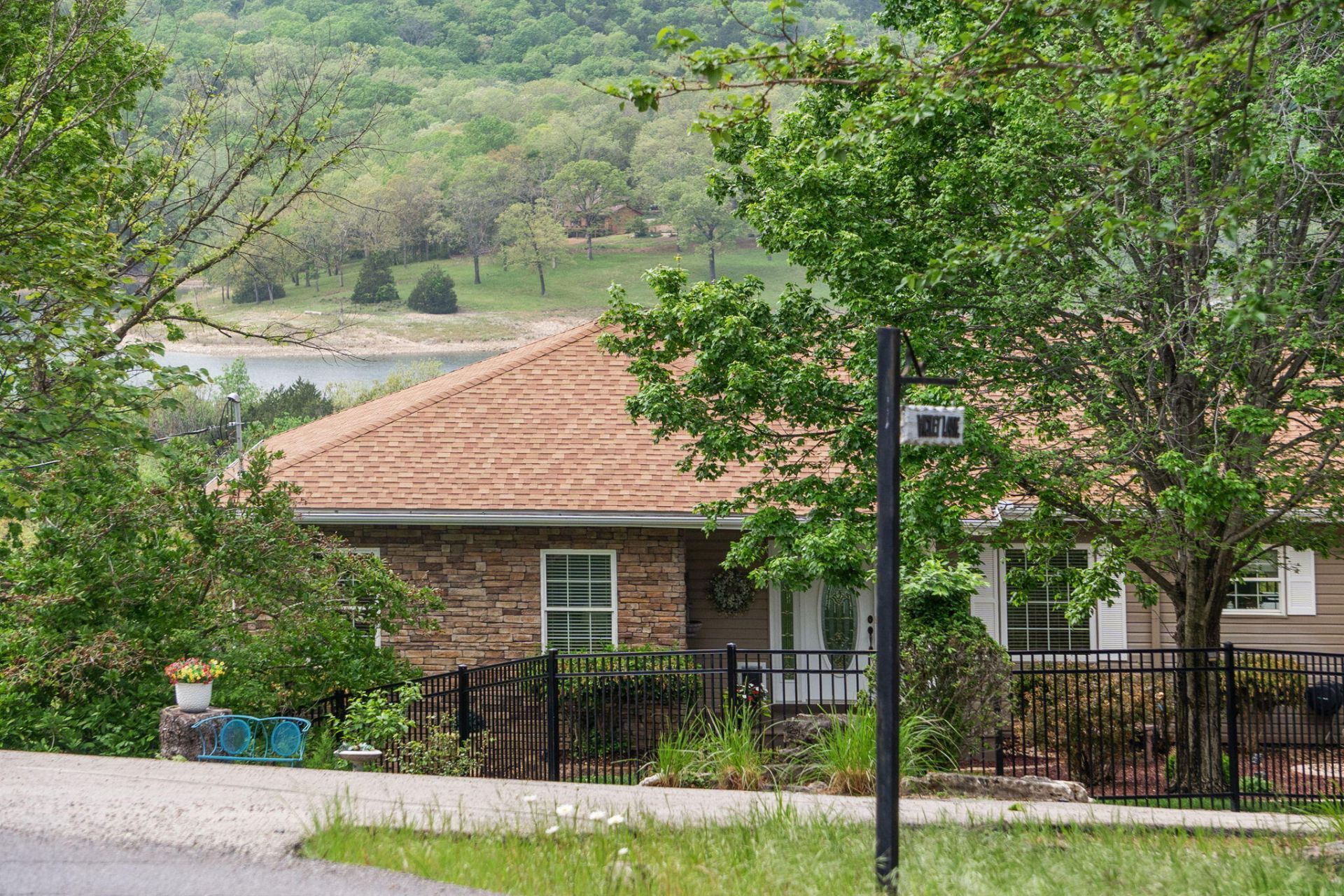 Lake life, elevated--welcome to your private Table Rock Lake view estate @ 19 Violet Ln, where everything was done right the first time. Step through a beautifully gated, fully fenced front yard--park-like & perfect for kiddos or fur babies--w/ lush green space & mature hardwoods anchoring standout curb appeal, leading to covered front entry. Nestled in a professionally landscaped nature oasis w/ multiple outdoor entertaining spaces, this property is built for memory-making. Enjoy quick lake access just min away, w/ coveted boat slip available (add $) & easy golf cart ride to the water.Inside, everything you need is on one level. Timeless engineered hardwood flooring flows through main level living, setting the tone for quality & warmth. Spacious owner's suite offers dual sinks, walk-in shower, walk-in tub & abundant natural light through oversized windows. Guests are welcomed through formal foyer into inviting family room anchored by cozy corner fireplace & tray ceiling, flowing seamlessly to covered back deck w/ stunning lake views & cool lake breezes.Home chef kitchen sure to impress even the most attuned culinary enthusiasts w/ stunning granite countertops, custom wood cabinetry, stainless appliances, pantry, & both dine-in + formal dining spaces--all w/ more lake views. Versatile flex room w/ French doors ideal for office, hobby, or add sleeping space.Downstairs, take entertaining to the next level w/ second living area, game space, storm shelter & full wet bar. Walk out to another deck plus flex space ideal for hobbies or workshop. In add to main level 2-car garage, dedicated workshop below w/ built-ins.Step outside to your lake view spa oasis featuring hot tub, lush perennials, flowering landscaping & peaceful water feature/pond.Optional community clubhouse access. Min to lake, local shops, eateries, Mark Twain National Forest & Branson.Private. Move-in ready. Perfect for full-time living or second home retreat. Lake view living redefined