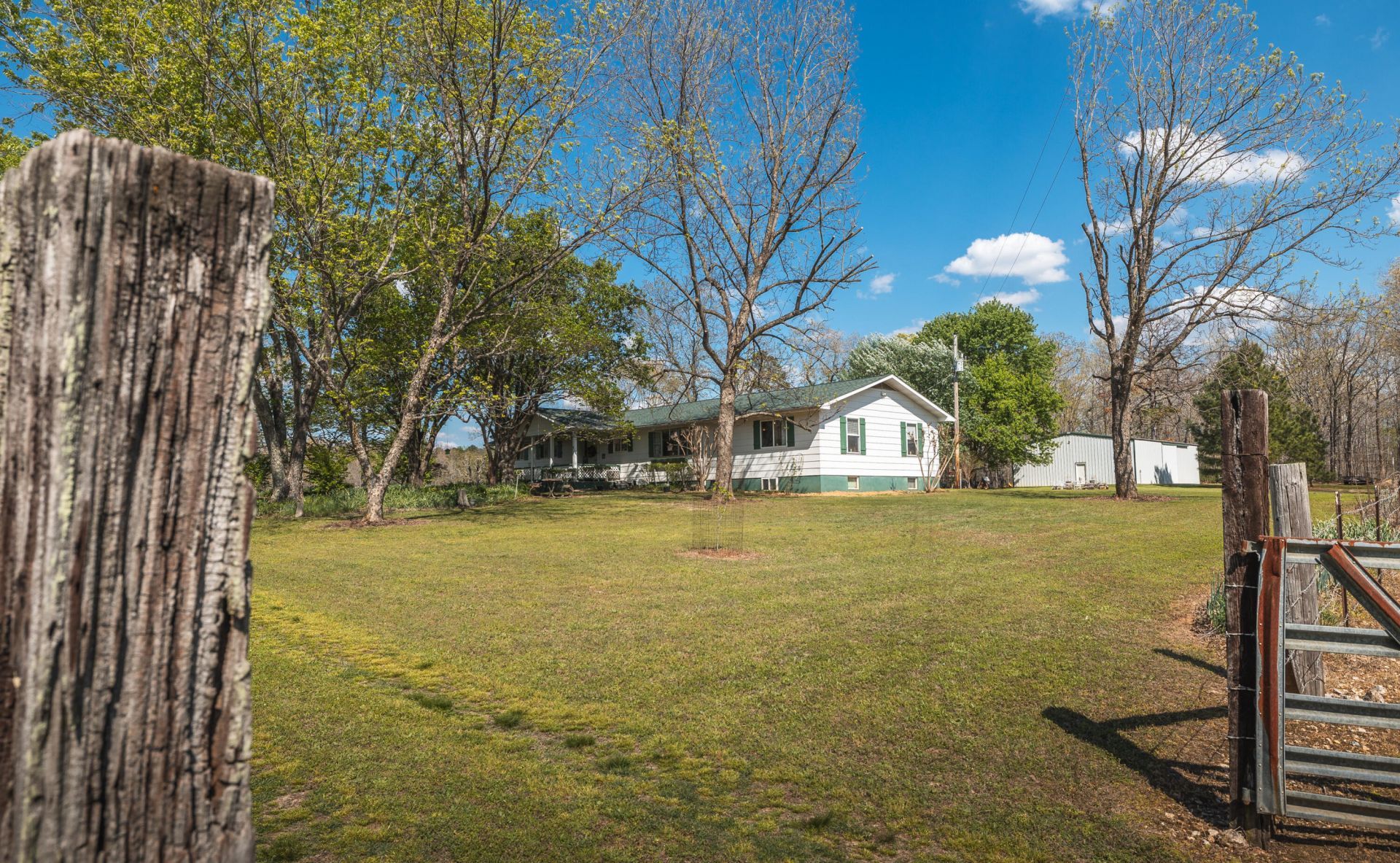 Welcome to The Hundred Acre Wood--an exceptional 100-acre property offering a rare blend of privacy, usability, and natural beauty, with national forest bordering three sides. A tree-lined drive leads in beneath a canopy of mature trees, ending at the home, where the land opens around you. Just beyond, a broad pond sits to the left of the house, complete with a dock and stocked with largemouth bass, while a second stocked pond and a third pond offer even more opportunity to enjoy the water.The land features a mix of open pasture and timber, including a 5-acre field, a 13-acre hay field, and a well-placed 5-acre food plot with apple, pear, and persimmon trees at its center, creating a natural draw for wildlife. Known for strong habitat and mature deer, this property is ideal for hunting or simply enjoying the outdoors. A wet-weather creek runs through the property, offering exposed gravel that can be harvested on-site. Located just 9 miles from the scenic Eleven Point River and even closer to the Irish Wilderness, the property is well-positioned for additional outdoor recreation.The home offers 4 bedrooms and 3 bathrooms and has been meticulously maintained, with recent updates including a new roof, brand new HVAC system with updated ductwork, and a tankless water heater. Inside, a functional kitchen and dining area flow into a living space centered around a stone, wood-burning fireplace. The primary suite includes an en suite bath and private deck access, while a secondary bedroom features a unique clawfoot tub. A partial basement provides additional flexible space.Additional improvements include a 40x60 barn/shop built in 2018 with a 20x40 insulated workspace featuring 220 electric, and dual 12x12 pass-through doors. A separate outbuilding--formerly a schoolhouse--along with a chicken coop and fenced poultry area adds to the property's versatility.The Hundred Acre Wood is a place to settle in, spread out, and make something of your own.