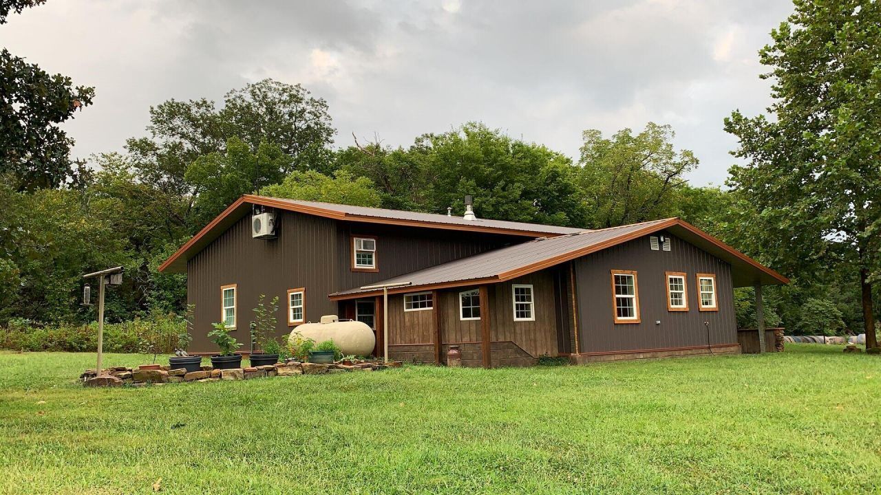 This peaceful & secluded retreat at the edge of the Ozarks features a modern country home built with the kind of attention that sets it apart. A wet weather creek feeds a private 1.5 million gallon USDA engineered pond on 13.28 acres of native prairie and woodland with a 100 year old hand dug well. Deer, wild turkeys, songbirds, fish & other wildlife rise with the early morning mist by shaded water. Over a mile of walking/atv trails wind through established permaculture like walnut, persimmon, pecan, various oaks & fruit with countless indigenous flowers & medicinal herbs. 2677 sf of finished climate controlled living and work space newly expanded & updated from a 2010 build is full of handcrafted hardwood trim & wallcoverings, all designed & detailed by the same craftsman who built this 3 bedroom, 2 bath home & studio. Systems & architecture are designed for simplicity and self-reliance, incorporating genuine materials & avoiding many problems that homeowners encounter. On the road less traveled, this freedom-minded homestead is a great relocation/bugout destination or small community retreat featuring an awesome corner office, heated decorative concrete floors & smooth easy to clean finishes throughout. Ventilated enameled steel panels provide added strength & protection. Plumbed for an additional kitchen, the studio could be used as a separate apartment, Airbnb etc. A 500 gal propane tank, security camera system, vintage rock outbuilding & cellar plus EMF/RF shielding/mitigation & environmental advantages all add value to this location 1 hr North of Springfield & Joplin MO. This listing is for Floor Plan 'C' with the 3rd bedroom & 2nd bath framed but unfinished. Layout can be customized to suit the new owners. Explore property details and multiple 3D floor plan options with pricing at GETOUTTADODGE.TODAY where the buyer can contact the sellers directly regarding a significantly reduced cash price for a streamlined closing. Coordinates 37.525278 N / -94.127778 W
