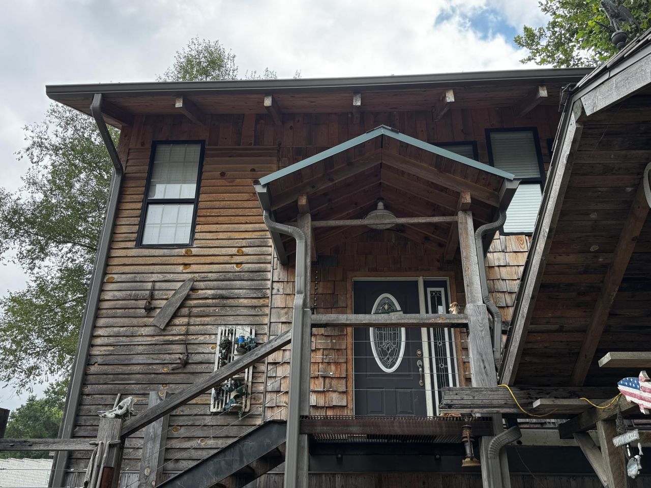 One-of-a-Kind Riverfront Retreat in ThomasvilleDiscover a truly unique riverfront escape, custom-built with character, creativity, and comfort in mind. This stunning post-and-beam home features flooring crafted from repurposed bowling alley lanes and a tongue-and-groove ceiling that adds warmth and charm throughout.Step outside to an entertainer's dream ? a spacious tiered deck overlooking the serene river, complete with an outdoor kitchen, Blackstone grill, refrigerator, wood-burning fire pit, and a 16x24 river deck perfect for gatherings or peaceful mornings. The kitchen wall opens outward to serve directly to an outdoor bar, while a glass-paneled garage door blurs the line between indoor and outdoor living for a breezy, open-air experience.Inside, you'll find high-quality finishes including hardwood and butcher block countertops with epoxy, a premium six-burner dual-fuel range, and a heat recovery system for energy efficiency. The main level offers a well-equipped kitchen, two living areas (one easily convertible to an additional bedroom), and a full bath. The upper level boasts a spacious bedroom and another full bath.For easy access, the home features both stairs and an elevator that takes you from ground level to the deck and main floor. There's also a mechanical room and full outdoor-access bathroom for cleanup after a day on the river.Located in the quaint, artistic township of Thomasville ? known for its vibrant creative community ? this double-lot property with well and septic is ready for you! Enjoy fly fishing, smallmouth bass, panfish, and trout downstream. Abundant wildlife, and some of the best floating in the region. Enjoy breathtaking views from nearly every angle and a charming restaurant just across the street.Close to Mark Twain National Forrest, you'll find it ideal for a hunting retreat, family getaway, or high-performing Airbnb. Don't miss this rare chance to own this distinctive riverfront home in the Ozarks!