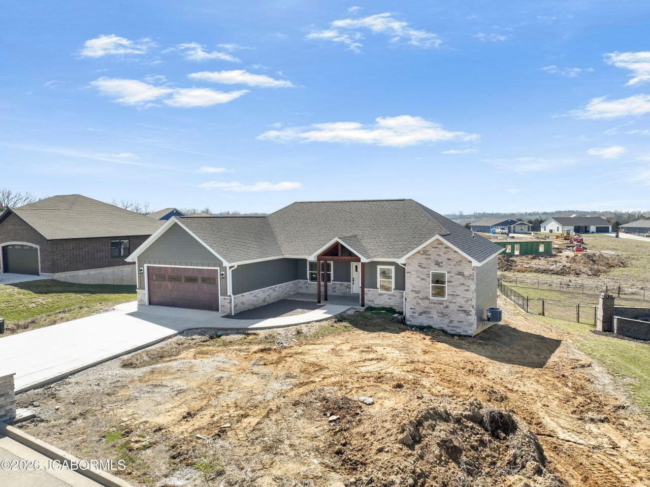 Welcome to this exceptional ranch-style home in a highly sought-after newer subdivision--where craftsmanship, design, and functionality come together seamlessly.With just under 1,900 square feet on the main level, this home offers the ideal blend of space and flexibility for modern living. The full unfinished basement--complete with a finished third bathroom--provides incredible potential to expand into a 5-bedroom home, giving you room to grow and customize to your needs.From the moment you arrive, the inviting covered front porch creates a warm and welcoming first impression. Inside, you'll immediately appreciate the thoughtful attention to detail and quality finishes throughout. The kitchen serves as the heart of the home, showcasing designer custom cabinetry, quartz countertops, an oversized island, stainless steel appliances, and a spacious walk-in pantry--perfectly balancing style and everyday convenience.The expansive primary suite is a true retreat, featuring dual vanities, custom cabinetry, a beautifully tiled walk-in shower with glass door, and a large walk-in closet complete with built-in shelving. The additional main-level bedrooms are generously sized and ideally positioned near a well-appointed guest bath. The living room offers a cozy yet refined atmosphere, centered around a fireplace with a custom mantel--perfect for relaxing evenings at home.The lower level presents endless possibilities, with ample space to create a large family room, additional bedroom, or entertainment area--all while already benefiting from a finished third bathroom.A third garage provides exceptional versatility, offering plenty of room for tools, recreational equipment, or additional storage.Step outside to the impressive 30' x 12' covered suspended concrete deck--an ideal space for entertaining, relaxing, and enjoying the surrounding views year-round.Conveniently located just minutes from State Technical College and close to everyday amenities, this home also offers the rare advantage of no HOA fees within the subdivision.Homes of this caliber and value are hard to find. Schedule your private showing today and discover all this remarkable property has to offer.