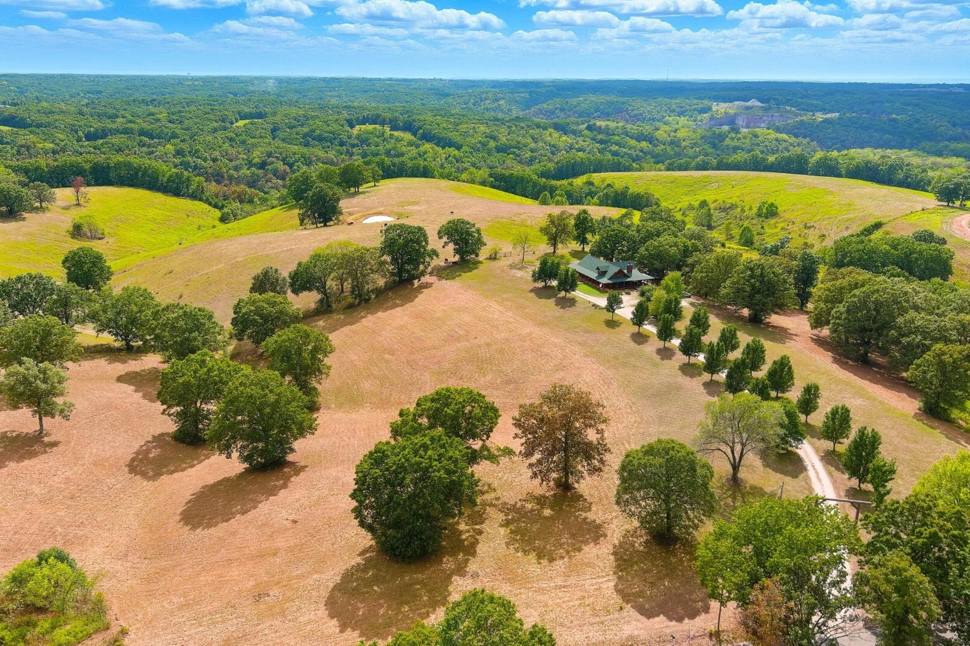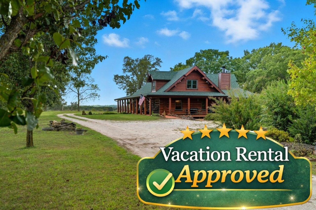 Mountain majesty! A true generational property, this classic log home blends timeless charm with modern luxury. Perched on approximately 7 acres in the Ozark Mountains, freshly restored Englemann Spruce logs wrap around a massive porch overlooking the rolling hill views and majestic white oaks. Step inside to find an open floor plan spanning three levels with four bedrooms, four baths, multiple living and dining areas, and office spaces. Natural light floods the home, highlighting custom kitchen cabinets, Elmira vintage-style appliances, and Jeld-Wen windows. A Harman wood pellet stove warms both the main and lower-level family rooms. This property comes fully fenced with RV hookups, dual garages, a carport, and abundant storage, making it ideal for families of all sizes. Thoughtful, parklike landscaping and a setting straight out of a storybook make this entertainer's dream a log cabin the pioneers would envy. Want more space? Add the adjoining 7 acres of park-like land available next door. This versatile property gives you room to think big, offering flexibility for short-term vacation rental, wedding venue, corporate retreat, or any other creative venture you can dream up! Schedule a private showing or explore the 3D Virtual Tour today.