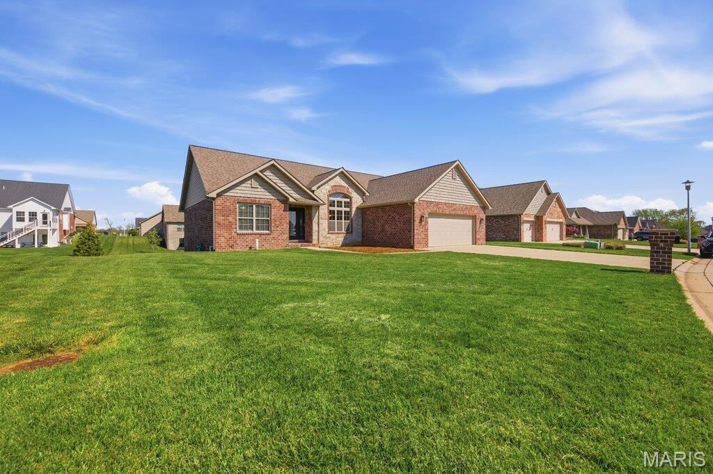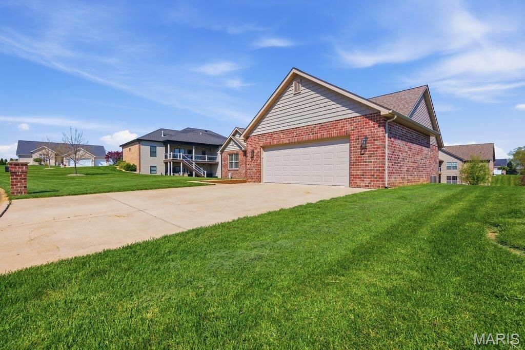Gorgeous home in one of Waterloo's most desirable subdivisions. This 2019 build is only 7 years old and features quality practical features for everyday living. 4 beds, 3 full baths and lower level living area with kitchenette. Enter into the formal foyer with leaded glass door. A large neutral planting bed just outside the door is perfect for seasonal, perennial, or potted decor. The covered front porch is the perfect place to hide your holiday decor. On the outside this home looks like it has a 2 car garage, but the 3rd car is located at the walk out basement back side of the home - the perfect place for your power, toys and other necessities that just cause clutter in your garage (up north, this is called a John Deere room). The formal dining room sits just off to the right as you enter and is open to the with a big arched transom window. expansive living room with vaulted ceiling, gas fireplace and practical LVP flooring. An aluminum spindle rail staircase leads to the lower level. The living room is open to the breakfast and kitchen so your chef can join the party! Breakfast room features double doors with built in blinds lead out to the spacious composite deck with aluminum spindle railing. A perfect place for grilling or chilling. The well-appointed kitchen features staggered height maple cabinets, granite counters, breakfast bar, gas stove, pantry and is open and vaulted. There is also a back buffet for entertaining or beverages. A laundry room just off the kitchen with large brook closet leads to the garage. A nice size master bedroom features carpet, vaulted ceiling and a huge shower with double vanity bathroom. There is a linen closet for convenience and a storage closet with drawers. A big walk-in closet will be a great place to keep you organized. 2 more bedrooms and a central bath complete the main floor. Heading to the walk out lower level 2021 finish you will be greeted by LVP flooring with a sliding door out to the lower patio. A 4th bedroom with double closet is a perfect space for guests or an office. The 3rd full bathroom has a walk-in shower for convenience. This basement includes a full kitchenette with granite counter, refrigerator, cooktop, and microwave. A perfect space for long term visitors or multi-generational living. There is a large unfinished space for storage and of course.... The John Deere Room with workshop area. This home has a practical and beautiful floorplan that just works!