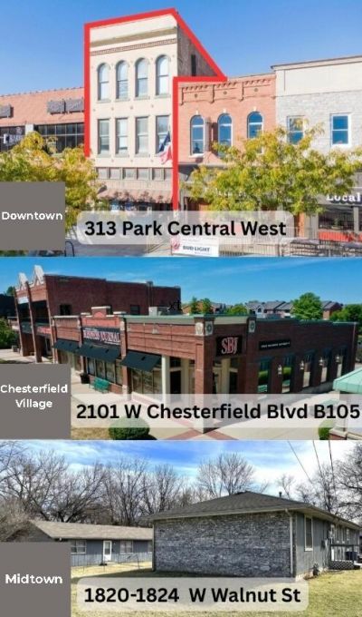Springfield, MO Commercial Portfolio For Sale. Represented properties include a Retail / Executive Office / Loft building in downtown located in close proximity to the Jordan Creek daylighting project on the Northwest side of Park Central Square, a Class A Executive Office Building near the intersection of Kansas Expressway and Hwy 60 in the beautiful Chesterfield Village planned development and two fully leased duplexes in midtown near the intersection of Kansas Expressway and Walnut Street.Diversified portfolio with office, retail and multi-family mix in three of Springfield's most desired areas. Significant savings in Portfolio Pricing: $2,200,000.313 Park Central West - Street-Level Retail / Executive Office with Luxury Loft Living Above - $1,200,000 (purchased separately) 1A - 2,000 SF Office w / reception, conference room, bullpen, kitchenette, restroom & 2 enclosed offices (Available for Lease) 2A -2,000 SF Luxury Loft w / 2BR, Cook's Kitchen, Dining, Large Living Room, Full Bath & in-unit Washer/Dryer (Available for Lease) 3A - 1,200 SF Luxury Loft w / 2BR, Kitchen, Large Living & Dining Area, Sitting Room, Full Bath & in-unit Washer/Dryer (Fully Leased) 3B - 800 SF Luxury Loft w / 1BR, Full Bath, Kitchen w / T-Back Bar, Living Room & in-unit Washer/Dryer (Fully Leased)1820-1824 W Walnut Street - 2 Fully Leased Duplex Buildings in Midtown ($370,000 purchased separately) Each unit is 845 SF w/ 2BR, Full Bath, Kitchen & Dining Area, Living Room & in-unit Washer/Dryer Hook-Up Shared Lot Features designated parking for 8 vehicles and 2 picnic areas w / sidewalk mounted picnic tables Space fully leased.2101 W Chesterfield Blvd B105 - 3909 SF Class A Office Building ($825,000 purchased separately) 4 private offices, 2 conference rooms, 2 restrooms, reception area, large kitchen w/ ice maker and dishwasher Space fully leased.