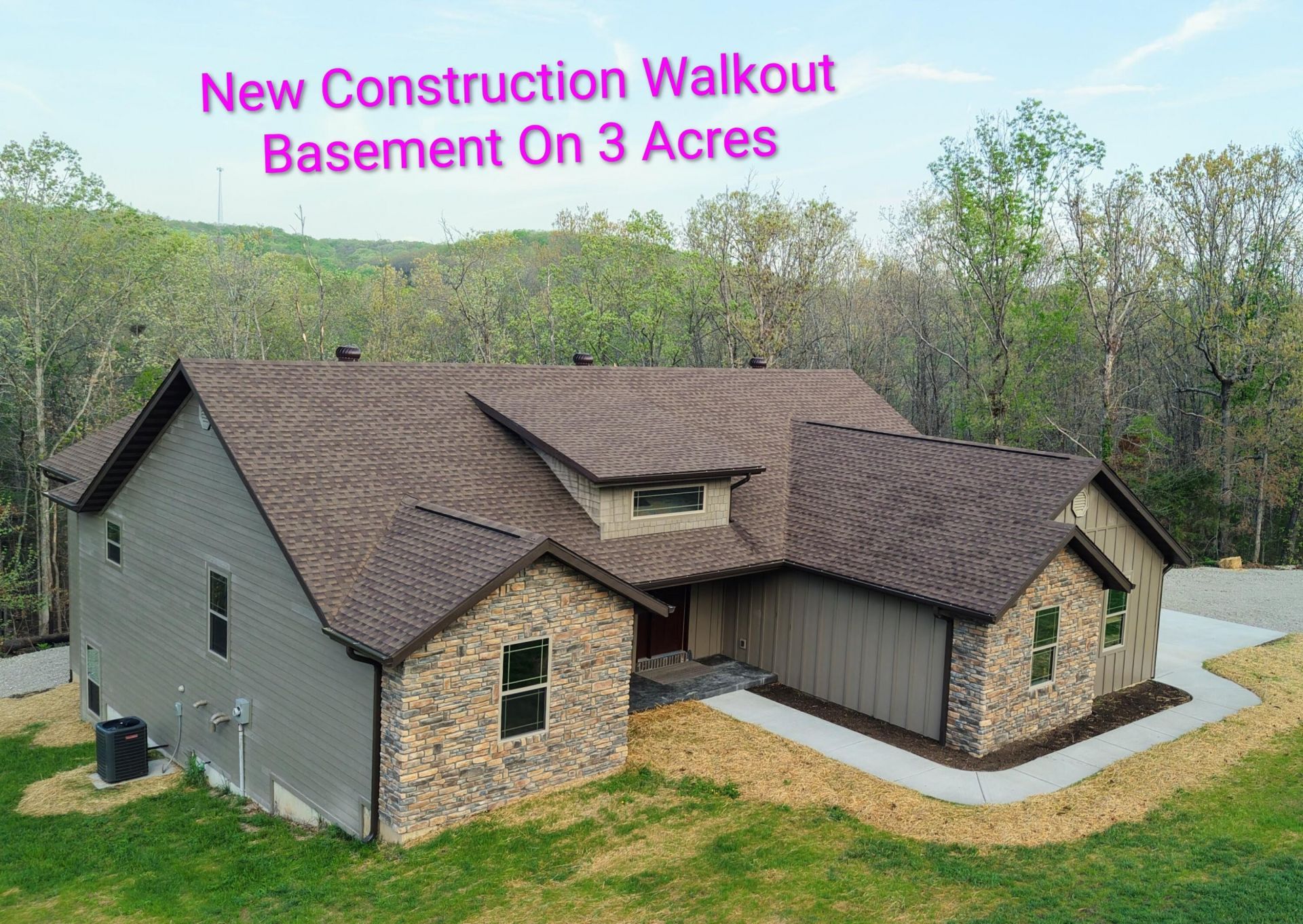 Secluded and exclusive, yet accessible and sensible, is where you'll find this exceptional, impeccable, and unforgettable brand new home! This custom designed walkout basement home sits at the end of a blacktop road on a 2.71 acre wooded lot in a very private and exclusive subdivision (Angels Camp) that's comprised of just a few homes near Northview, Missouri. Located just a few minutes from Marshfield and a short 20 minute drive down I-44 to Springfield, the location has the best of both worlds being both very private but not far away from shops and services (it's only 15 minutes from Buc-ees!). On the exterior you'll love the side entry garage, stone and hardiplank siding exterior, the forest of mature trees directly behind the house that filter the evening sunsets that you'll watch from the large covered back deck. Step inside to real hardwood floors, rich natural wood cabintery, granite countertops, a split bedroom floor plan, a primary suite with a soaker tub and separate walk in shower. The main bedroom has a HUGE walk in closet and there's a large walk in pantry off the kitchen and garage entry. A full basement that's partially finished (insulated and sheetrocked) offers lots of possibilities and could have 2 additional bedrooms and 2 living areas. It's already plumbed for a wet bar and offers an oversized John Deere room that exits on to the back patio. The back of the home is truly the highlight with a large covered deck and patio overlooking the woods at the end of the road. Hard to find this much privacy and this setting that's so accessible! Check it out soon before its gone like the Dogwood and Redbud tree blooms