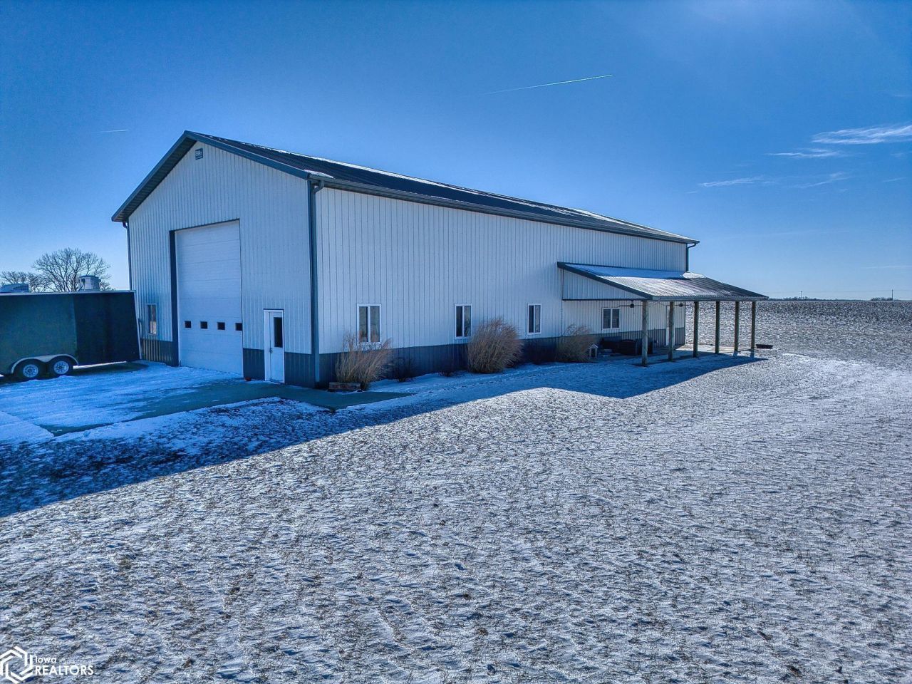 Experience rural living at its finest with this beautiful barndominium on almost 25A! The living area offers tall ceilings and a spacious living room area, just off of the kitchen and eat-in dining room. You'll find two bedrooms and one bathroom on the main level, in addition to the utility room. In the lofted area upstairs, you'll find a large primary bedroom, as well as an area that is great for a den or playroom. The bedroom also features its own bathroom and large walk-in closet. Heated floors throughout make the living space as well as the shop comfortable year-round. The 40x40 shop space is also lined and insulated. Set out on the patio and enjoy the sunset views over the nearly 1A pond. There is also a second pond at the back of the property, along with some timber. There are 17.23A certified that have been farmed and are currently open for the 2026 season, so whether you are interested in cash renting or farming yourself, the choice is yours to make. Come check out everything this beautiful acreage has to offer!