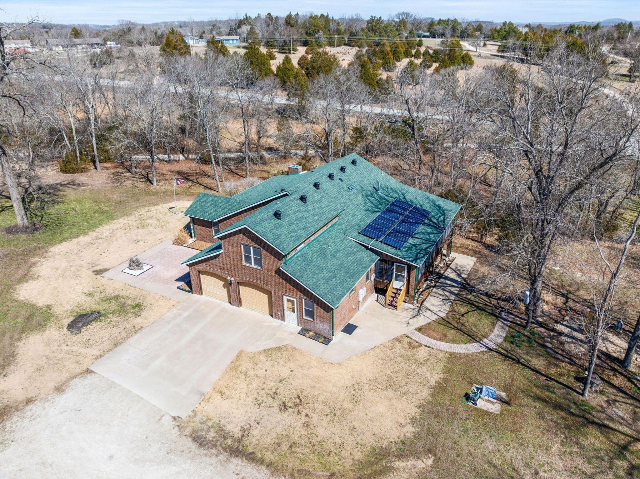 Welcome to this exceptional custom-built residence offering over 5,500 square feet of thoughtfully designed living space where quality construction and timeless craftsmanship shine. Lovingly maintained by just two owners, this home features 4 spacious bedrooms, 3 full baths, and 2 half baths, including ADA-accessible features, delivering a rare blend of luxury and functionality.A grand foyer opens to an expansive, light-filled living room anchored by a stunning double-sided fireplace, ideal for everyday living and entertaining. The formal dining room is perfect for elegant gatherings, while the kitchen impresses with custom-made plain sliced Red Oak cabinetry, built-in Lazy Susans, abundant Corian® counter space, a matching portable island, lighted display cabinets, a walk-in pantry, and all appliances included.The main-level primary suite provides a private retreat featuring a jetted tub, walk-in shower with a fold-down seat, and accessible bath features. An additional bathroom offers a therapeutic walk-in tub for added comfort. Energy efficiency is enhanced by triple-pane windows and solar tubes that fill the home with natural light, along with 2x6 exterior walls and R-19 insulation for year-round comfort.Enjoy outdoor living on the 39' x 9.7' screened-in deck or entertain on the 26' x 22' side patio. Additional highlights include a concrete-walled safe room, oversized two-car garage, and a 57' x 12' mechanical room ideal for storage or a workshop. Solar power and a 1-year home warranty add peace of mind.Located minutes from Branson attractions, including Silver Dollar City, Big Cedar Lodge, Thunder Ridge Arena, Buffalo Ridge Golf Course, and Table Rock Lake, this home truly offers luxury, accessibility, efficiency, and location in one remarkable property. Schedule your private showing today.