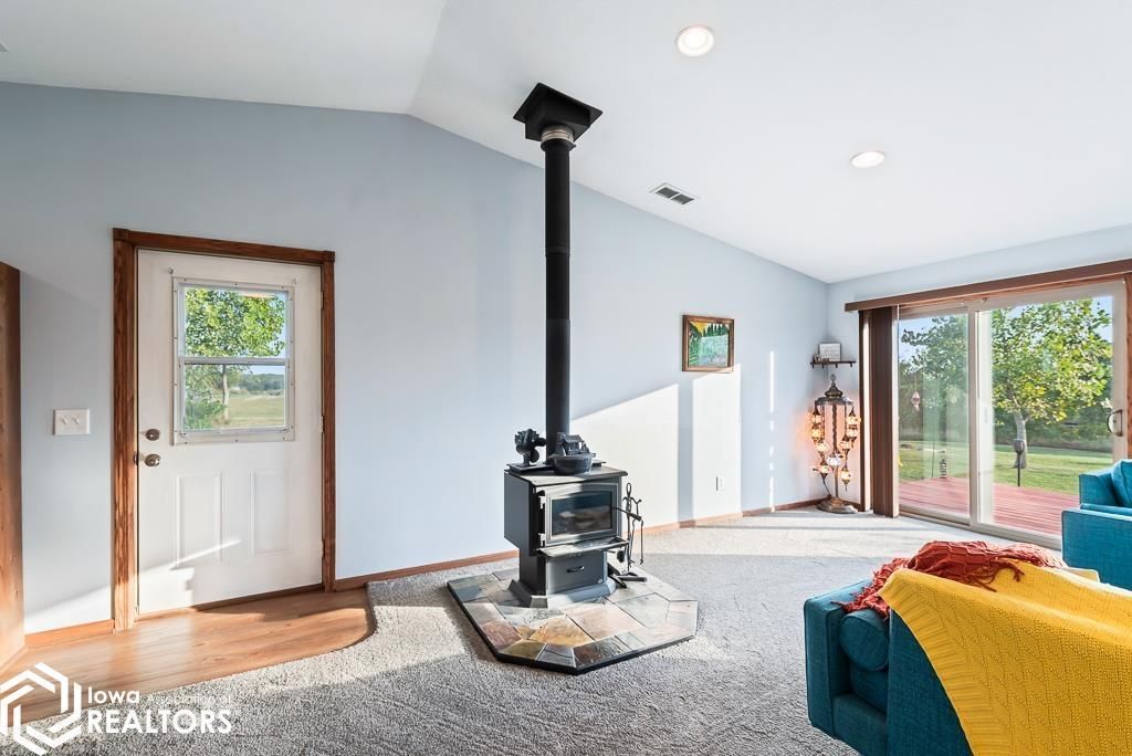 Escape to your own peaceful retreat just off the paved road! This Newer 2 Bedroom/2 Bathroom Acreage features a wood stove, pond, and wide-open views ? plus plenty of space for chickens, gardening, and simple country living. Cozy, private, and full of charm Step inside to find an open living floor plan with newer flooring warmed by a wood stove. Down the hall is the Primary Bedroom with Private Bathroom. There is a 2nd Bedroom as well as a the Spacious Laundry Room with Bathroom and Shower right by the back door. The door opens to a beautiful stamped concrete side and covered patio with a 2 car detached garage & guest space or an office. Whether you're dreaming of entertaining or simply seeking peace and privacy, this property provides the perfect backdrop. A true retreat, yet conveniently close to main road access. Don't miss the chance to make this charming acreage your home! Agent is related to Seller.