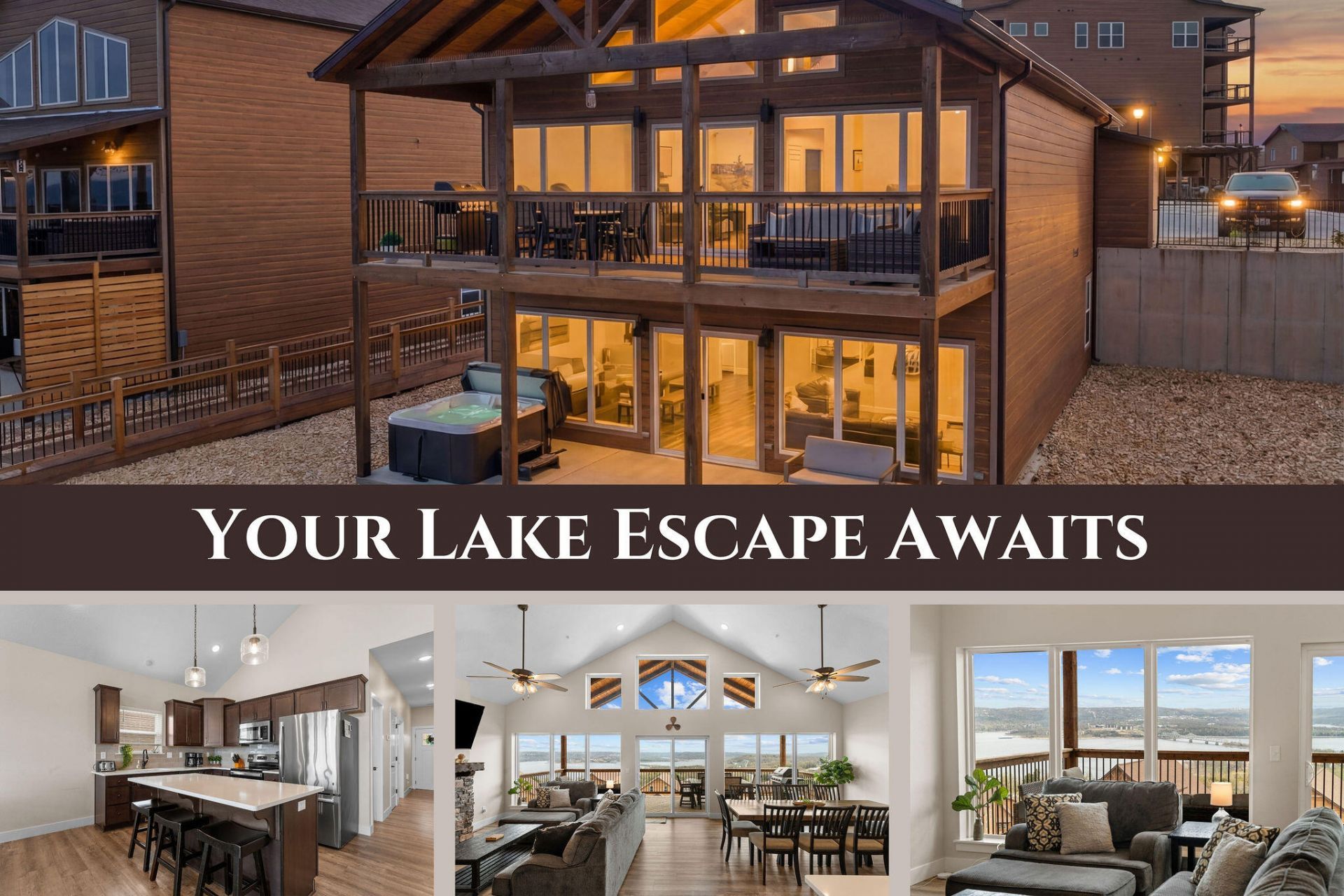 Welcome to Wilderness Mountain - Your Turnkey retreat with panoramic views, premium amenities, and unbeatable appeal! Discover the ultimate upscale lake retreat in this 5-bedroom, 7-bath luxury cabin with commanding panoramic views of Table Rock Lake! Situated in an established nightly rental community, this turnkey property delivers an incredible income opportunity while offering a true resort-style experience. The open-concept layout highlights a fully equipped kitchen with all appliances, great room with a wall of windows showcasing the pristine water views, cozy family room, two living areas and more! Enjoy outdoor living at its finest with a massive covered deck for hosting friends & family and a patio with private hot tub--perfect for relaxing and soaking in the stunning lake views. High end Amenities complete the resort style with three pools - including a lazy river, game room & basketball & pickleball courts! Excellent location! Conveniently located just minutes from area attractions, dining, and shopping! Don't miss out on this amazing opportunity!