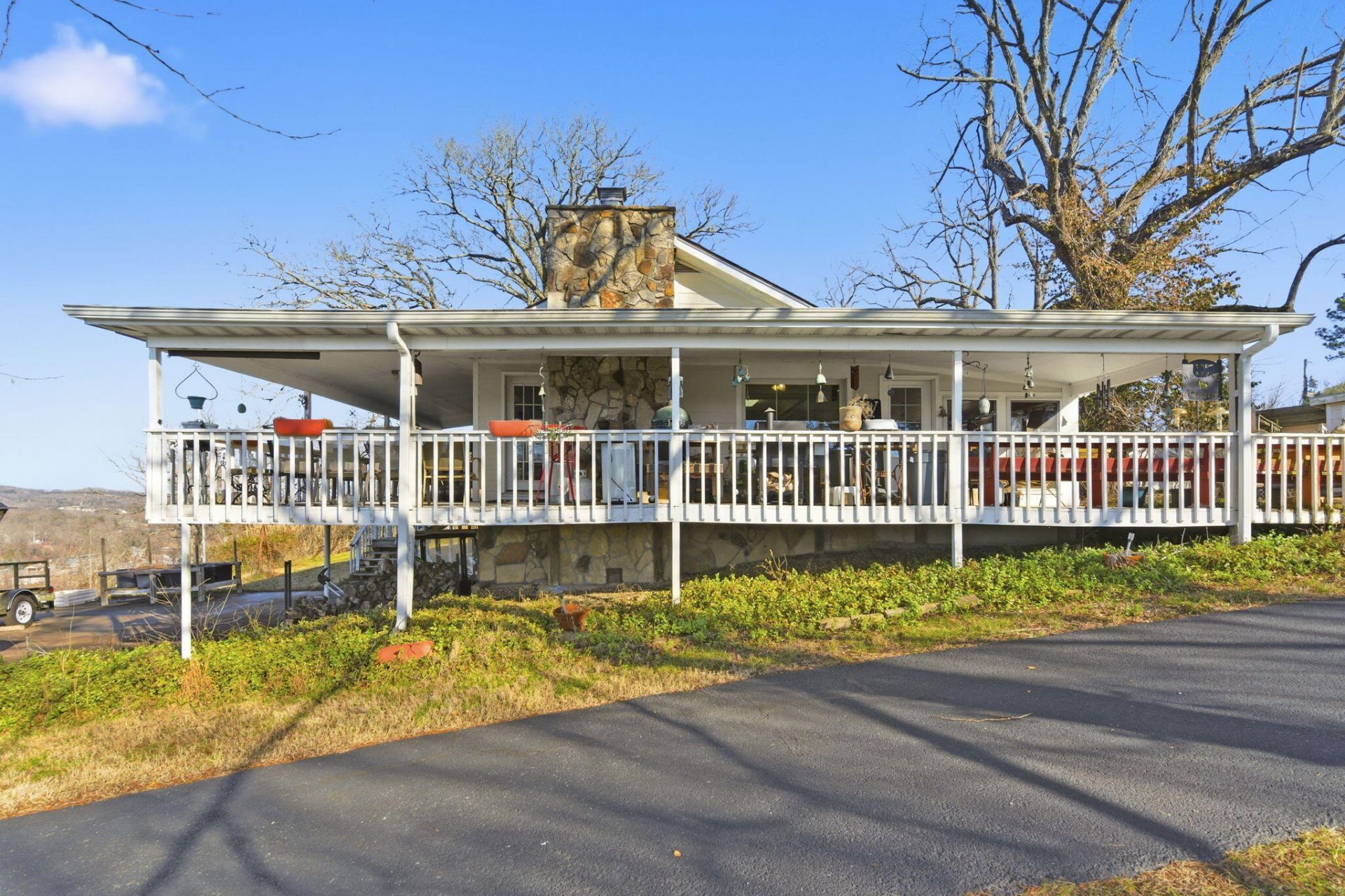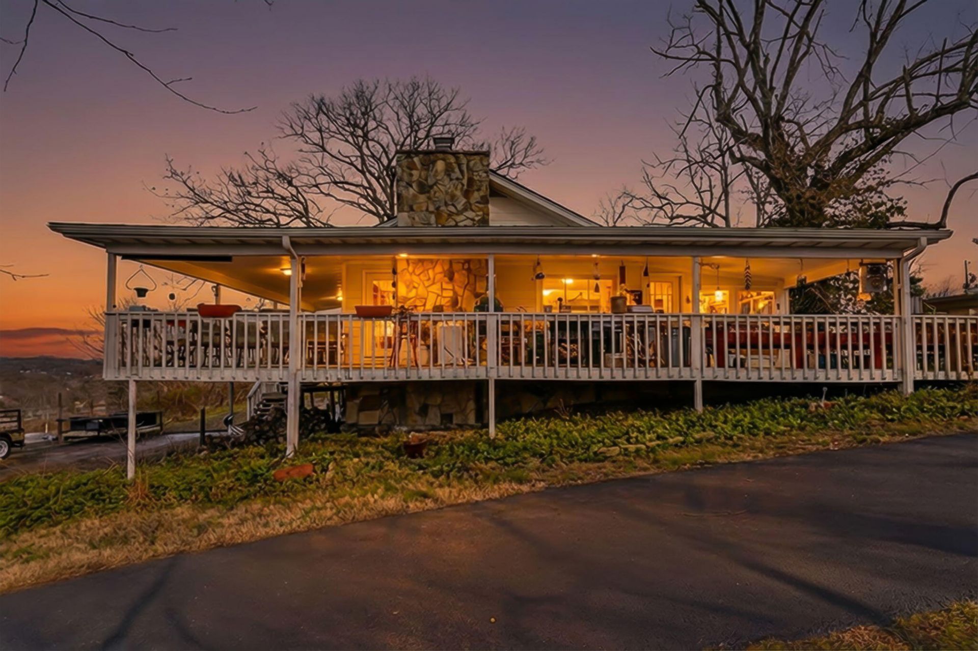 VIEW, LARGE FLAT YARD, VIEW, LARGE FLAT YARD....AND DID I SAY VIEW!?!!! The main house has 3 ample bedrooms and 3 full bathrooms. The guest house has a large living area and 2 bedrooms and a full bath with a very large walk in shower. The sunsets here sitting on your wraparound porch are simply stunning, and you never have to go anywhere for the 4th of July-just sit on your porch and watch the full display from Rockaway Beach down below. In the evenings, you see a colorful display of the Branson city lights in the distance.Own a gorgeous 3 bedroom HOME with a 2 bedroom GUEST HOUSE, an in-ground salt water pool, a workshop and over 9 acres with a phenomenal panoramic lake view. Sitting on the bluff on the Branson side and overlooks Rockaway Beach and Lake Taneycomo. If you enjoy watching wildlife, this is your dream home. You will see Eagles flying overhead often, deer, foxes, rabbits and squirrels.The 2 bedroom 1 bath home, built in 2011, has it's own wraparound porch as well and shares in the stunning views.