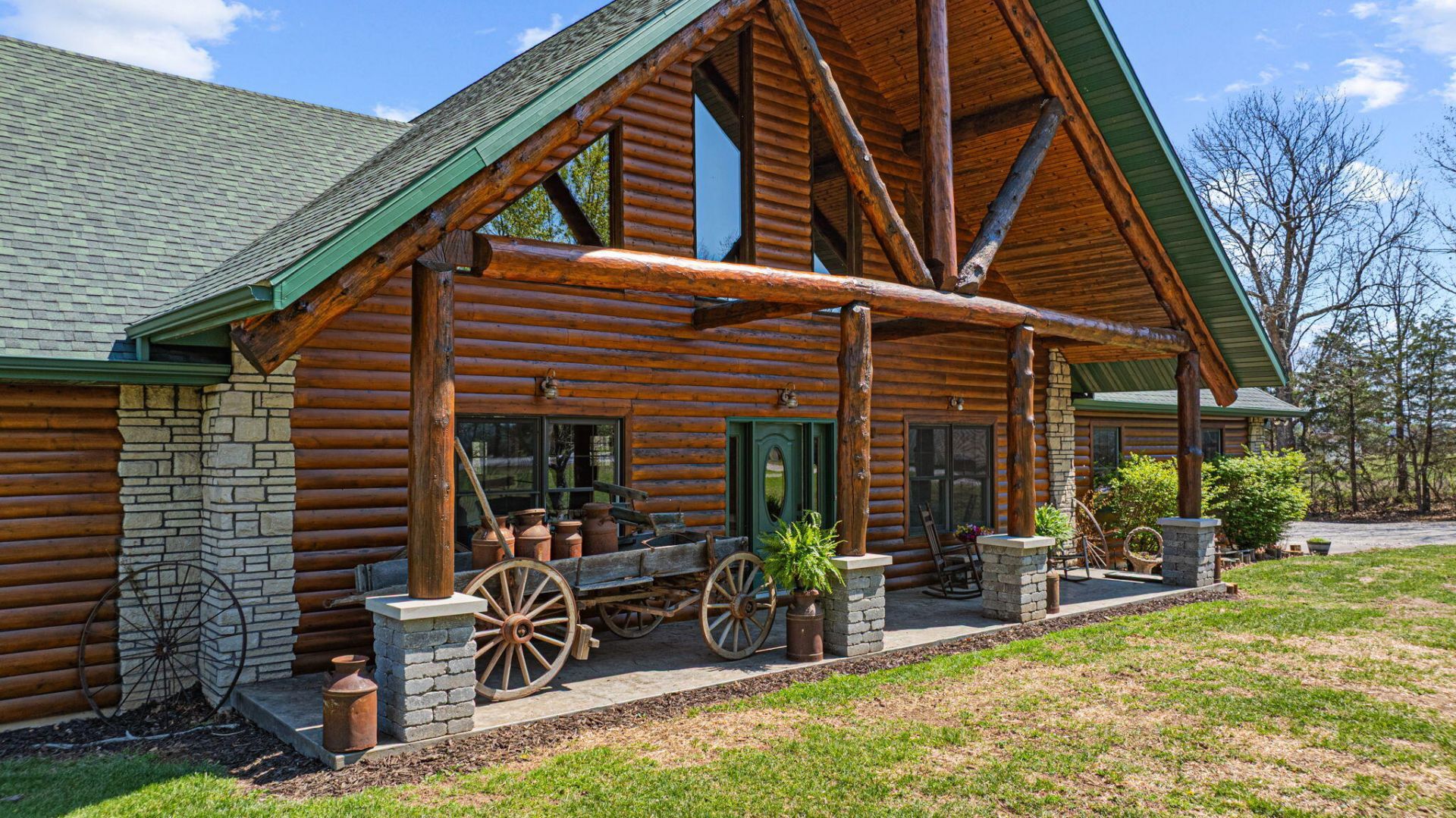 Set on 11.13± acres in Greene County, this custom-built log home tells a story the moment you arrive. Located off blacktop with quick access to I-44, the home's location is more than ideal. As you pull into the driveway you will notice the beautiful log exterior. The timbers were hand-selected and brought in from Colorado, and you can feel that craftsmanship in every corner from the rich texture of the freshly stained exterior to the warm, rustic embrace carries throughout the interior. Built in 2003 and offering 3,332+/- square feet of living space, this home has room to relax.Step inside to a soaring living room with vaulted ceilings that opens to the dining area and kitchen. The solid oak floors and cabinetry add timeless character, and the spacious kitchen is ready for your next family gathering. With abundant cabinet space, a double oven, and a warming drawer, it's designed to make hosting easy and enjoyable.The layout offers both comfort and flexibility with four bedrooms, three full baths, a den, and an open concept dining room. On the main floor, you'll find a master suite, along with two bedrooms connected by a Jack-and-Jill bath. Upstairs, the private primary suite becomes your personal escape. Featuring a walk-in closet and a beautifully remodeled bathroom, it's the kind of space you'll look forward to ending your day in. Step out onto the balcony and have your morning coffee with the sun rising through the trees or a quiet evening with a glass of wine, it's peaceful and serene.This home has been well maintained and updated, including a new roof in 2022, upper and lower AC units replaced in 2025, a new furnace in 2025, and a new hot water heater in 2025. A Central Boiler outdoor wood furnace offers an additional heating option, blending efficiency with that classic country lifestyle. You'll also appreciate the convenience of central vacuum, an 800' well with a newer pump, and a large storage/attic space above the three-car attached garage.