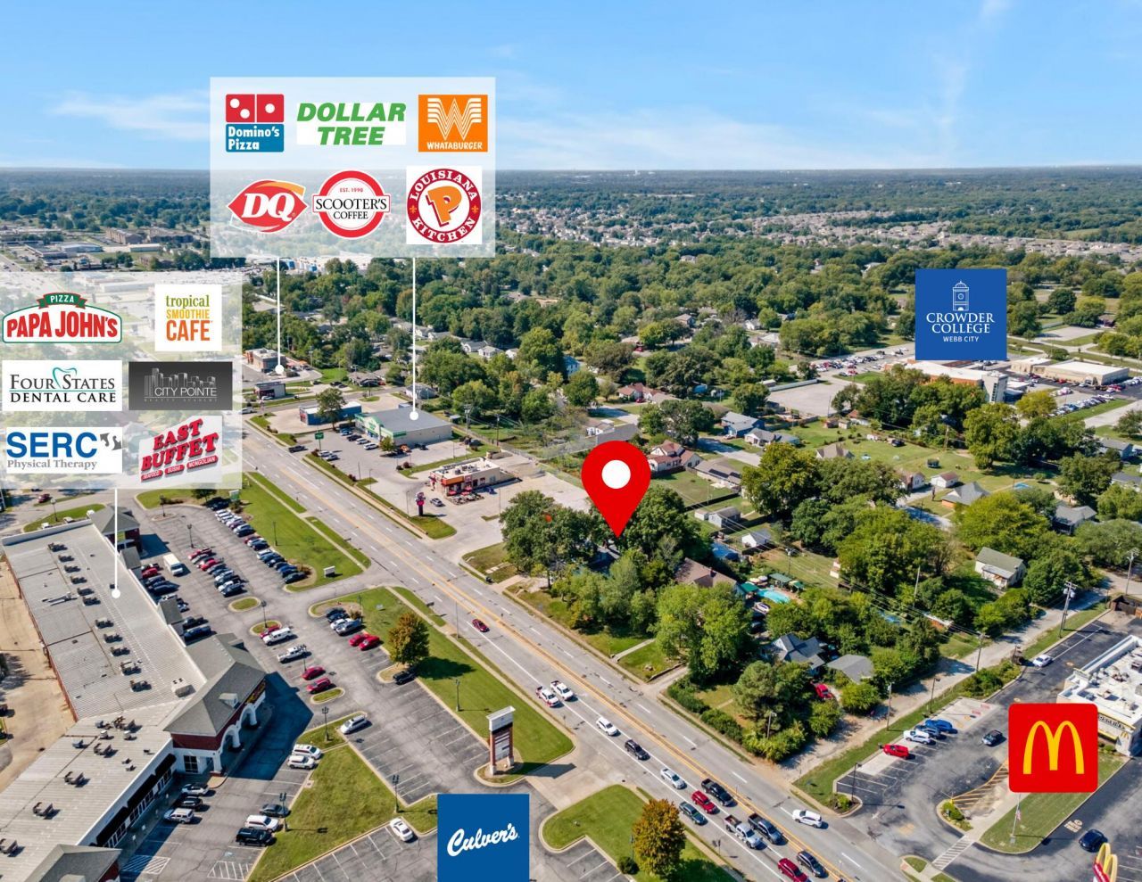 Prime Commercial Redevelopment Opportunity! 522 S Madison St offers a high-visibility location in the heart of Webb City's thriving commercial corridor, with an average daily traffic count of over 18,000 vehicles. With access to city water, sewer, and electric, this property is ready for your next development. The true value is in the land, ideally positioned near major national brands like McDonald's, Dairy Queen, Culver's, and a busy strip center, making it perfect for a quick service restaurant, retail storefront, or professional office. The site will be cleared of all sheds, providing a clean slate for redevelopment. This high-traffic, high-exposure location offers unbeatable visibility and access?a rare opportunity for developers and business owners to establish a presence in one of Webb City's most active commercial zones.