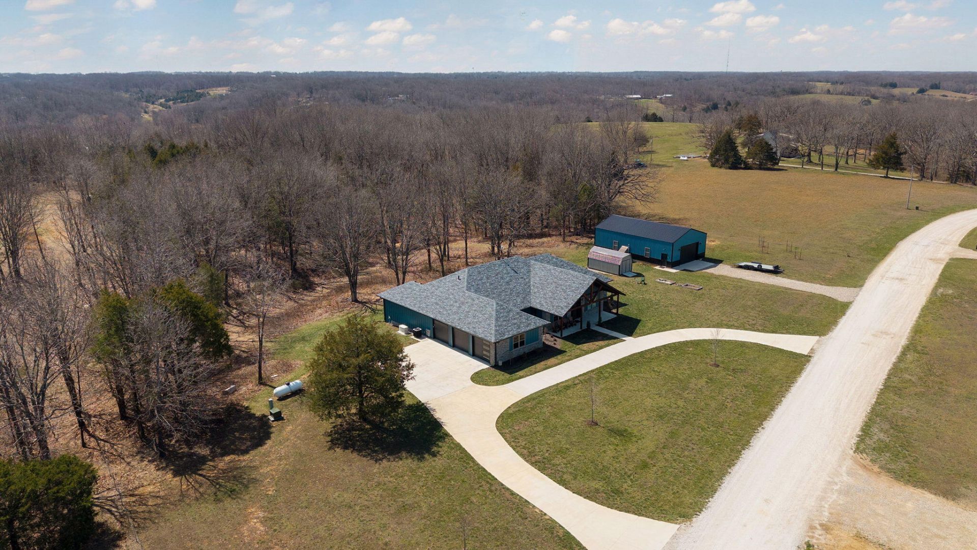 Practically New! Stunning ranch home in Fordland sitting on almost 5 acres of nature's beauty. This home speaks fluent charm from the start, with a covered front porch, stunning wood pillars, and almost 3,000 square feet all on ONE level. Step inside to a warm and welcoming living space filled with natural light, wood accents, vaulted ceiling,an open kitchen and living area that feels both spacious and inviting. The home also offers a formal dining room, huge pantry, mud room, office, and large bedrooms, including a beautiful primary suite with a soaking tub, walk-in shower, and walk-in closet. Don't forget about the oversized 3 car garage! Out back, the large covered deck is the perfect place to take in the scenery, watch the deer, and enjoy your wide open spaces. A generous 30x50 shop was built in 2024 adds even more to love, complete with insulation, heat, and air, a 10x20 shed with a loft, a new roof in 2025, all new landscaping in 2024, and a whole house generator added in 2025, this home is a combo of modern yet natures finest!