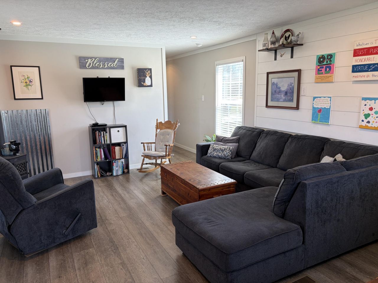 Come enjoy country living on 5.78 acres, featuring a 3 bedroom, 2 bath manufactured home and a 288 square foot in-law suite. The home is a 2024 Champion Piton delivered onto the property in August of 2023 and tied down to poured concrete. It has the northern insulation package and provides beautiful views of the property. A Jotul wood stove was added in 2024 for extra warmth on cold winter days. The in-law suite was built in the spring of 2024 and features a large deck that connects it to the main house and serves as the perfect spot to watch the sunset. Several fruit trees have been planted on the property in the past few years including apple, pear, peach, and plum. Persimmon trees and American Plum trees grow wild in addition to a variety of plants that can be foraged. The property is ready for chickens and has had goats and sheep on it in the past. There are also two 10X16 sheds on the property, one of which has water and electric run to it and has been used as an extra living space. The side of the shed also contains a place to plug in a 30 amp trailer. Agent owned.