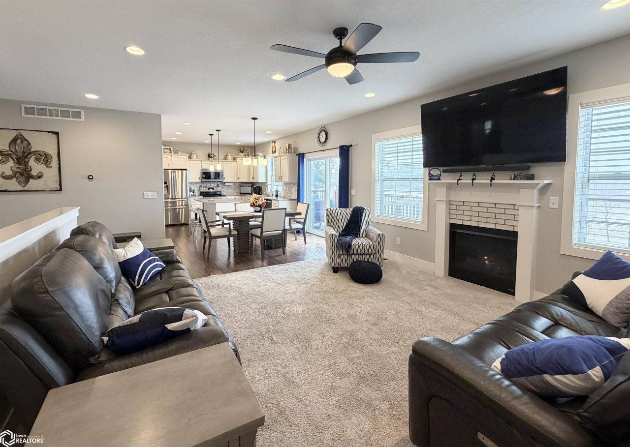 Located at 726 E 26th St N in Newton, this impressive 2018-built ranch sits on a spacious .33-acre lot and offers 1,659 square feet of well-designed main-level living with exceptional surroundings. This home has over 2,800 SF of finished living space (including the basement). The open-concept layout seamlessly connects the living room and kitchen, both of which face the park and offer excellent views, with a nice gas fireplace serving as a warm and inviting focal point in the living area. The home features three bedrooms on the main level and three bathrooms, with two bathrooms on the main level and one bathroom on the lower level, creating a comfortable and functional layout. The impressive primary bedroom includes a large walk-in closet and a 3/4 bathroom featuring stylish subway tile in the shower. A nice-sized laundry and mudroom is conveniently located just off the entrance from the heated three-car garage, adding everyday functionality. Step outside to enjoy a nice deck off the back and a patio off the walkout basement, ideal for relaxing or entertaining. Most of the basement is finished and includes a large family room and a bar, offering excellent additional living and recreation space. This home provides the perfect blend of country-style living while still being in town, with no backyard neighbors and over 70 acres of city-owned parkland directly behind the home.