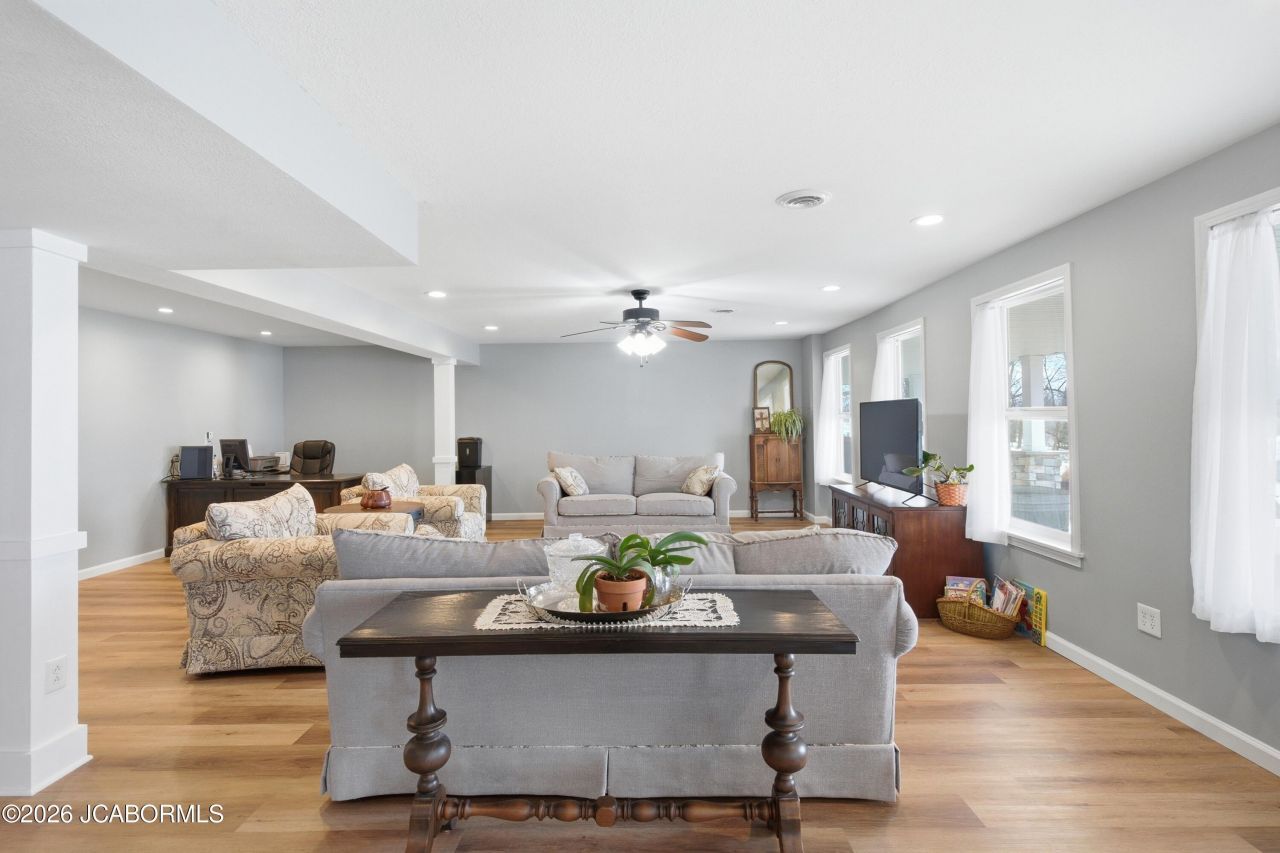 With nearly 3,300 square feet of living space, this beautiful and energy efficient 3 bedroom, 3 bathroom home is sure to impress! From the moment you walk in, you'll appreciate the open-concept design, highlighted by a large formal dining area that immediately catches your eye and leads you into the spacious kitchen featuring granite countertops, stainless steel appliances, a pantry, and a butcher block island. The living room is oversized and offers endless possibilities for furniture arrangement and entertaining. The main-level primary suite is generously sized and includes a spacious walk-in closet along with a private bathroom featuring an onyx walk-in shower and oversized vanity.You'll also love the convenience of the main-level laundry room, complete with a wash sink and extra space for a folding table.Upstairs, you'll find a second family room with a beautiful balcony view overlooking the kitchen below. Both upper-level bedrooms are massive and include walk-in closets with attic access. One of the bedrooms functions as a suite with direct access to a full bathroom.Situated on 3 acres in the Westran School District, this property offers more than just a stunning home. The 55.5 x 27 shop is a standout feature with three spacious sections: a 27 x 25 area with updated electric, concrete flooring, and heat, perfect for projects or hobbies; a 14.5 x 20 heated and cooled space that would make an ideal office; and a 16 x 27 section with an overhead electric door, great for a mower, storage, or additional toys.Ready to enjoy summer? Take a look at the large 24 x 52 pool surrounded by a 16 x 24 deck. Watch for the fruit trees too! There are several on the property! This home is truly move-in ready with a 5-year-old metal roof, HVAC approximately 4 to 5 years old, an upstairs unit that is only 2 years old, and a lagoon that is up to code.Offering modern charm, efficiency, and room to spread out on acreage, this Westran School District property truly has it all! What more could you want?