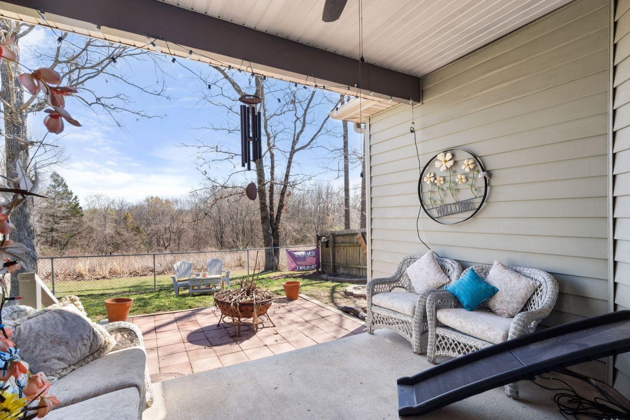 Welcome to Brushy Creek, where comfort meets nature in this thoughtfully designed patio home at 73 Fellowship.This efficient, single-level home offers 3 generously sized bedrooms and 2 bathrooms, perfect for full-time living, a second home, or hosting family and guests. The open-concept layout creates an easy flow, with a bright kitchen featuring crisp white cabinetry, newer appliances, and a striking black farmhouse sink as its centerpiece. The laundry is conveniently located just off the kitchen for everyday ease.Step outside and enjoy both a covered front porch and a covered back patio--ideal for relaxing and taking in the peaceful, natural surroundings. The fenced yard is pet-friendly, while mature trees and blooming azaleas provide beautiful, low-maintenance landscaping.Built for simplicity and durability, the home features brick on the front and vinyl siding on the sides, offering both curb appeal and easy upkeep. A one-car garage adds valuable storage and convenience.Located in the scenic rolling hills of Brushy Creek, you'll enjoy nearby walking trails and a quiet setting, while still being just:30 minutes to Branson and Silver Dollar CityMinutes from Top of the Rock and Dogwood Canyon -Approximately 5 miles to Table Rock Lake access and public boat launchIf you're looking for low-maintenance living surrounded by nature, this home offers the perfect balance of comfort, convenience, and lifestyle.