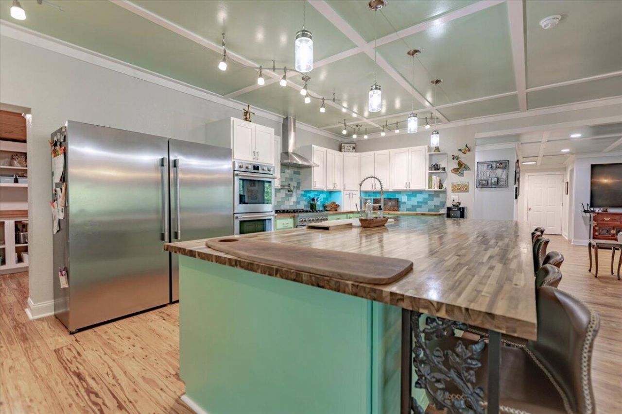 Stunning 4-Bedroom Home with River Frontage & Exceptional Upgrades - Just Minutes from Town! Welcome to this beautifully updated 4-bedroom, 3-bathroom home nestled just 2 miles from city limits, offering modern luxury, expansive living space, and serene river frontage. With gorgeous eucalyptus flooring and an open-concept great room, this home is designed for both comfortable living and elegant entertaining. The heart of the home is the dream kitchen, featuring a massive 5.5' x 12' Acacia wood butcher block island, dual farmhouse sinks, ceramic subway tile backsplash, and open shelving with rich hickory countertops. A commercial-sized stainless steel refrigerator, gas stove with electric oven, two built-in electric ovens, a range hood vent, walk-in pantry with stand-up freezer, and a wine cooler make this space a chef's paradise. The spacious main-floor primary suite includes a luxurious en-suite bath with a large walk-in onyx shower, dual shower heads, an onyx countertop, and a double hickory vanity. A second bedroom and full bath are also located on the main floor, along with a convenient laundry area. Upstairs you'll find two additional bedrooms, a third full bathroom with an onyx shower, and a large family room currently being used as a classroom - perfect for a home office, playroom, or study area. The home includes a 3-car attached garage, plus two additional garage doors in the basement for even more storage or workshop space. The unfinished walk-out basement offers plenty of potential for future expansion, with direct access to two more attached shop/storage areas. Step outside to the show-stopping 20' x 30' covered deck overlooking the river - a peaceful setting for gatherings, relaxing, or enjoying the natural surroundings. With river frontage, a geothermal heat pump, and quality finishes throughout. New 8/2025 6 ton climate Master 2 stage Geo unit w/ zone control with heat kit