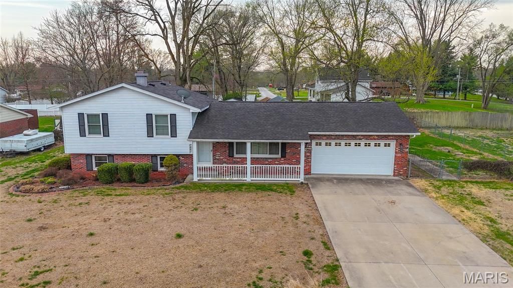 Looking for country living while still being close to amenities? 79 Rolling Meadows checks all the boxes! Located on the outskirts of Godfrey on a dead end street-in a desirable neighborhood. This Tri-Level property consists of two lots combined to offer almost 1 acre of land, minutes from the highway, and close to stores/restaurants! The covered front porch leads into the living room with plenty of natural light from the picture windows (2025), entryway features hardwood flooring that continues into the dining room. The dining room opens up to the kitchen that provides plenty of cabinetry and countertop space, appliances are all included with sale- seller is willing to leave any or all of the furniture if desired. New carpeting has been installed on stairs and hallway leading to the upper level (2026). Three spacious bedrooms all have generous closet storage-and two of the bedrooms offer newer vinyl plank flooring. Upstairs the full bathroom offers ceramic tile flooring and tub/shower combo. Beautiful wood doors and trim complete the upper level-reflecting the quality of the home's construction. Downstairs, the basement has been almost completely finished-family room has new carpeting (2026) along with a wood burning fireplace as the focal point of the room. Additional space could be utilized for many purposes such as work out room, or home office. Washer and Dryer in Laundry room included with sale. The second full bathroom rounds out the lower level of this meticulously maintained home. The attached oversized two garage is heated by a 30,000 BTU propane heater and has plenty of space for hobbies or more storage-concrete dual lane driveway provides additional parking. The fenced backyard is accessed through garage or new sliding door(2025) from dining room-wonderful space for entertaining or enjoying a nice day on the expansive deck. Other major updates include: All windows (2025) and roof (approx. 2022). Water Heater (2024) Furnace/Air Conditioner Trane High Efficiency (2024) Newer 200 amp panel. Property being sold AS-IS. Set up a showing with your Realtor of Choice for an opportunity to own this beautiful home!